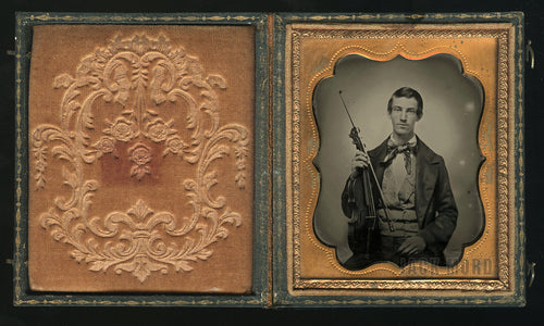 Excellent 1/6 Antique 1850s Ambrotype Photo ~ Musician with Violin / Violinist