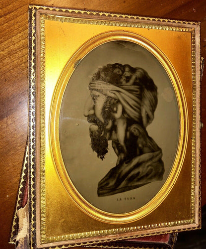 1/6 Daguerreotype of Painted Portrait Painting of a Man with CRUTCHES