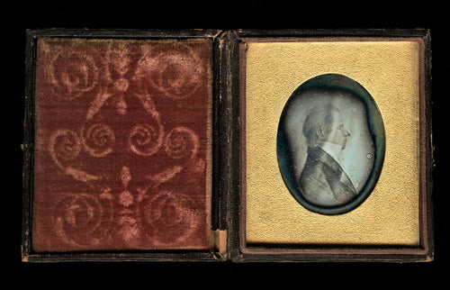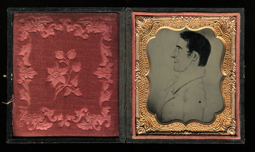 1/6 1860s Ambrotype of an Earlier Primitive Folk Art DRAWING - Man in Profile