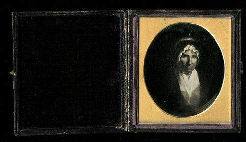 1850s Daguerreotype Painting of a 1700s Colonial Or Revolutionary War Era Woman