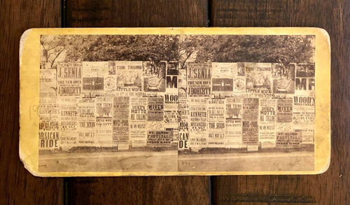 Rare 1860s Stereoview Wall with Great Broadsides including Tom Thumb & Wife