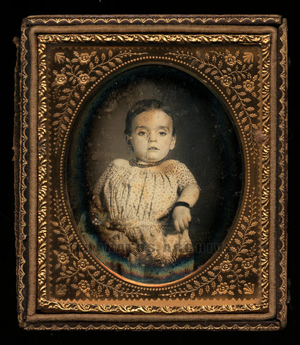 Post Mortem Daguerreotype, Little Girl in Chair, Open Eyes, 1850s