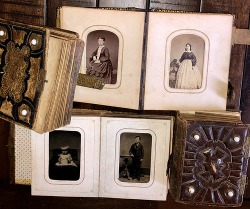 FOUR small albums +124 total antique photos tintypes cdvs (SA3)