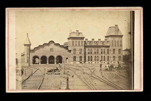 Rare 1860s St. Albans Vermont Train Shed Railroad Station & Workers CDV Photo