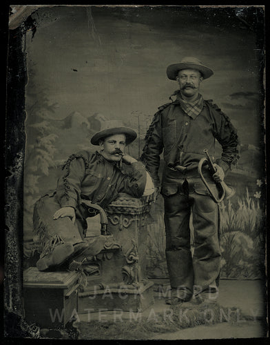 Excellent Antique Cowboys / Army Scouts Tintype Photo / Both Armed One Holding Bugle