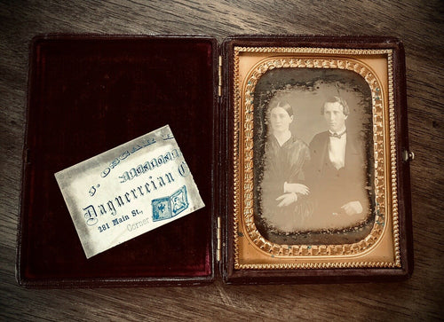 1/4 Daguerreotype Handsome Couple PB Case Photographer Business Card 1850s