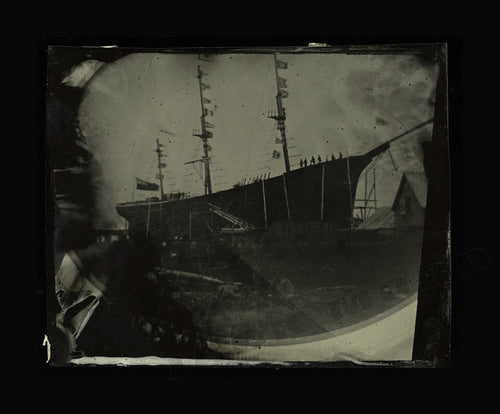 1860s Tintype Photo Tall Ship with Sailors on Deck - Civil War Related?