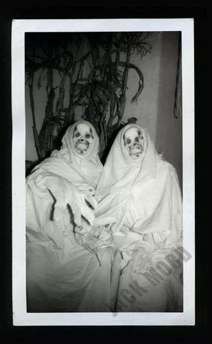creepy halloween costume skull ghouls or ghosts vintage snapshot photo