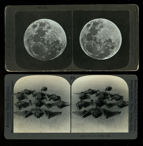 2 Antique 1800s Photos Bats & Full Moon Halloween Delight! Witch / Creepy Int