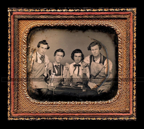 Incredible Occupational Daguerreotype 1850s Workers w Wrench Tools Weaving Shuttle Etc
