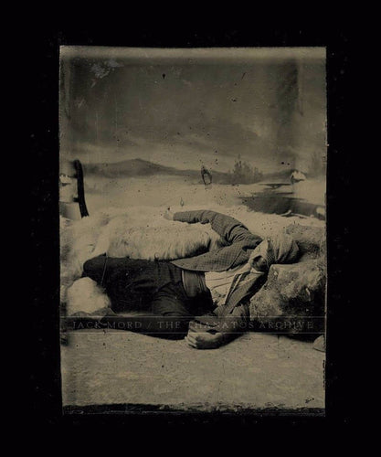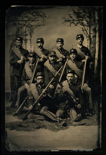 1/4+ Tintype Group of Armed Soldiers Infantry Antique 1800s Military Photo