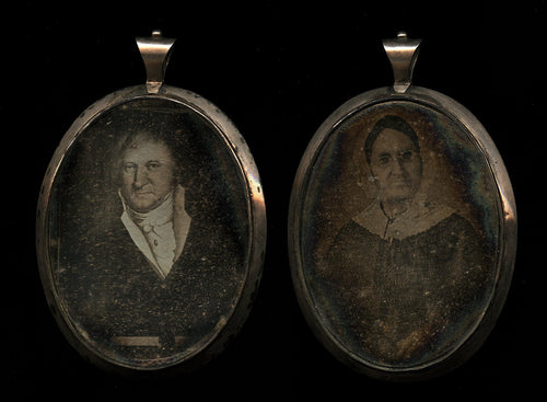Antique 1840s 1850s Double Daguerreotype Pendant Jewelry Painting of Man & Woman