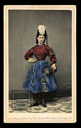 Beautiful & Rare Museum Quality Civil War CDV Photo - Missouri Vivandiere / Cantiniere Holding Water Cask