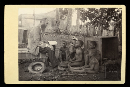 Rare Antique Photo Teacher / Missionary and Group of Black Children - Africa?