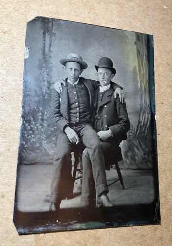Two Cigarette Smoking Men One in Friend's Lap / Antique Tintype Photo