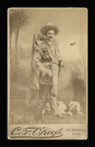 Antique Photo Iowa Cowboy Hunter / Scout with Winchester Rifle & Hunting Dog
