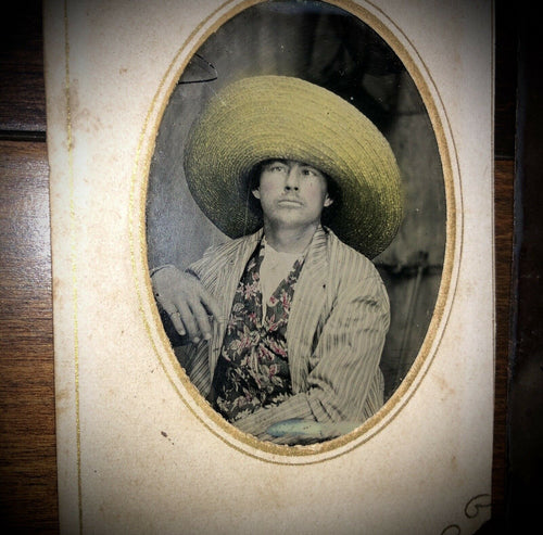 3 Tintype Photo Memphis Tennessee Man Reading Newspaper Tinted Sombrero 1800s
