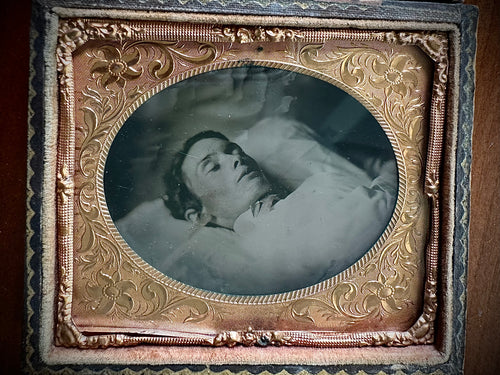 1/9 Post Mortem Tintype Photo of a Girl or Woman in Bed 1860s