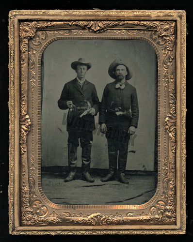 Half Plate Tintype Two Men Armed w Guns & Knife - Indian Scouts? Outlaws