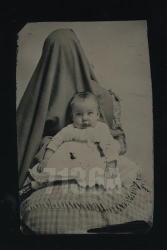 19TH CENTURY PORTRAIT OF BABY HIDDEN MOTHER
