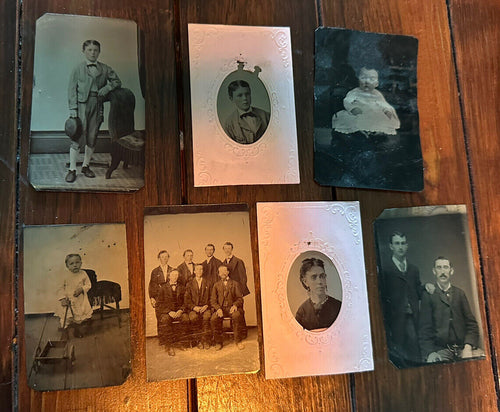 Big Lot of 37 Whole / Full Plate Folk Art Painted Antique Tintype Photos
