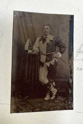 Victorian CLOWN Or Jester Tintype Photo 1800s Circus Performer Unusual Costume