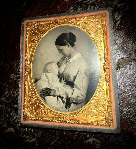 Rare Antique Breastfeeding Nursing Mother Tintype Photo Alabama, Georgia 1860s