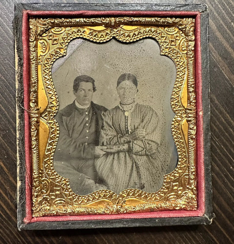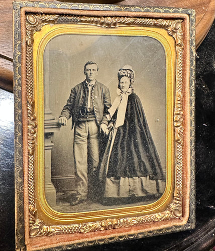 1/6 Tintype Photo Civil War Soldier & His Wife Holding Hands