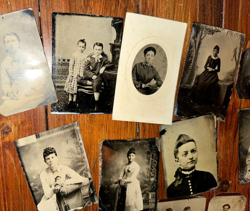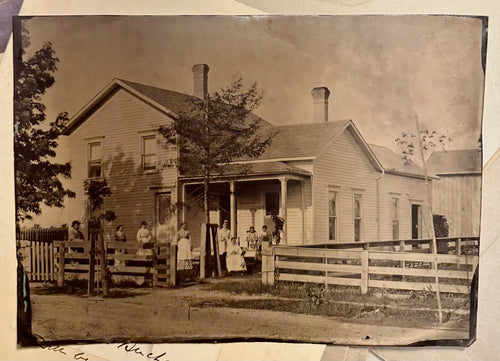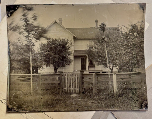 Full Plate Tintype Victorian House with Family in Front Yard 1870s