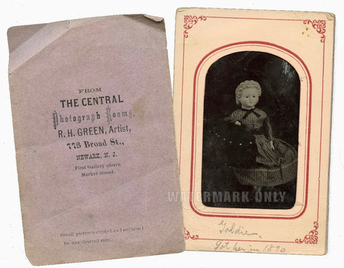 Antique 1890s Tintype Photo of GOLDIE the Doll Sitting Alone in Chair 1800s Rare