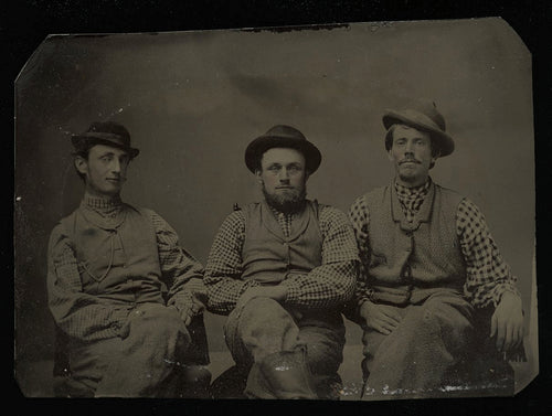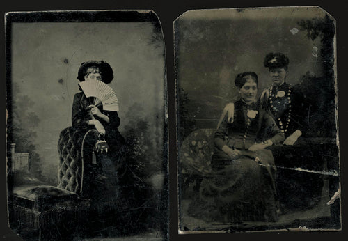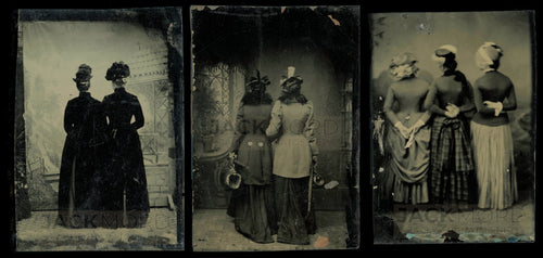 Rare Unusual Rear View Tintype Photo 3 Victorian Women Backs Turned to Camera
