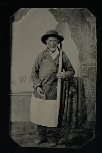 Occupational Tintype Photo Man Holding Shovel Tool Unusual Clothes 1800s Miner