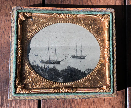 Rare Tintype Photo Ships at Sea 1860s Civil War Era Rare Navy Outdoor