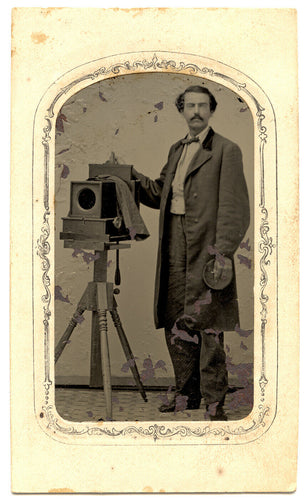 Antique Tintype Photo of Connecticut Photographer Posing with His Camera 1800s