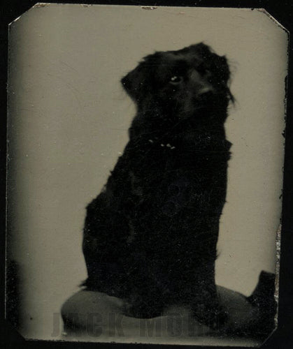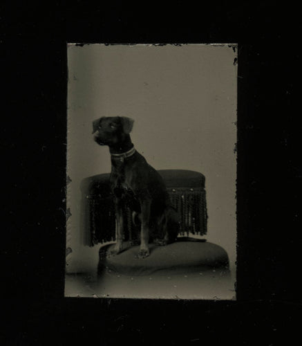 Miniature Gem Tintype of a Dog on Fringed Posing Chair 1860s