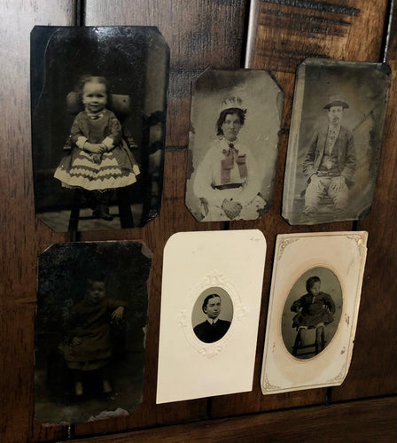 Lot of 6 Antique Tintype Photos - Cute Kids, Woman, Man