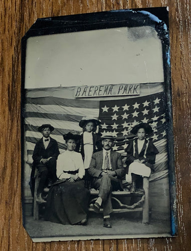 ANTIQUE TINTYPE PHOTO VICTORIAN GROUP AT BAERENA PARK ALBANY NEW YORK