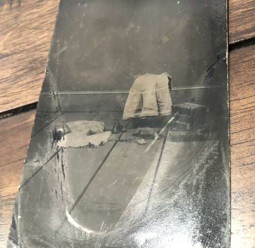 "Daisy's Place" Unusual Tintype Photo Child's Clothes & Shoes - Memorial Scene?