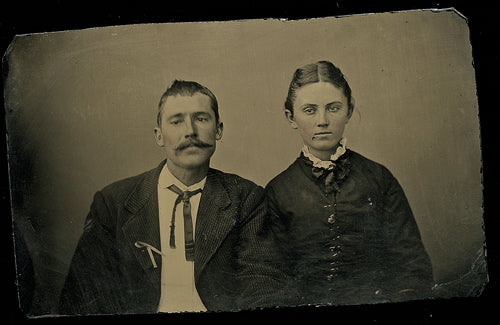 handsome 1860s tennessee mustache man & Young wife w injury on face! 1800s photo