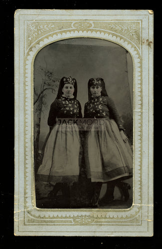 tintype girls wearing amazing moon & stars matching dresses! antique photo