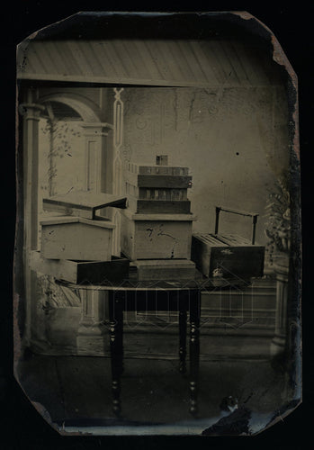 Very Rare & Unusual 1860s Tintype Photo - Beekeeping Hives - Occupational Int