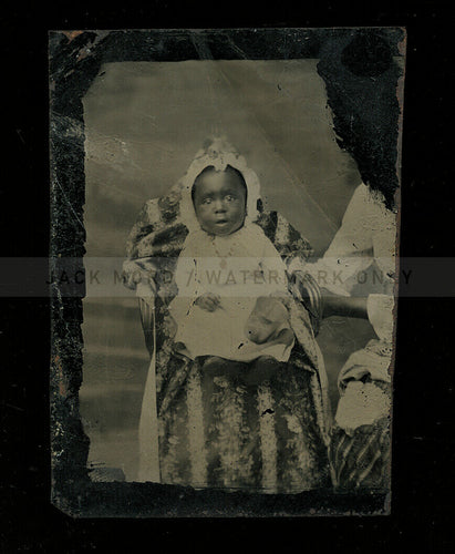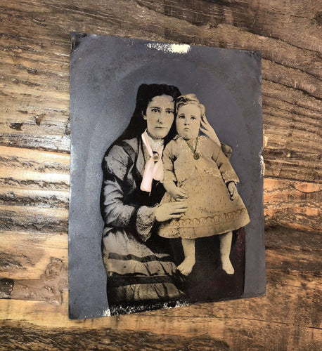 Full Plate painted folk art tintype Photo woman holding child original 1800s