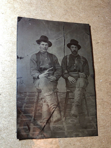 Tintype Armed Cowboys or Outlaws w Gun & Hatchet - Jim Younger Lookalike?