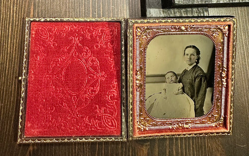 1/6 Post Mortem Tintype - Pretty Woman Holding Baby Civil War Era - 1860s 4371