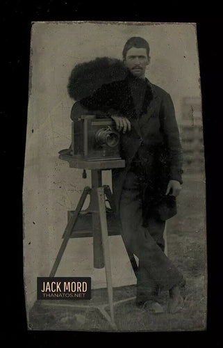 Rare 1860s 1870s Tintype Photographer Posing with His Camera Outdoor Studio