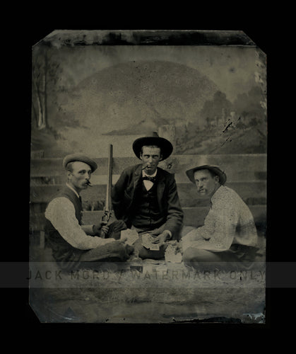 1/4+ antique tintype photo cigar smoking poker player shotgun 1800s