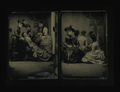 Unusual Tintype Lot Women Playing Dentist + Back Turned Facing Away Camera Photo