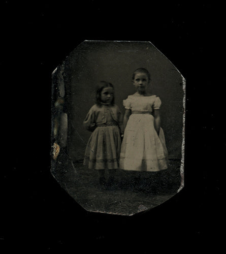 Miniature Tintype Photo Little Girls Holding Hands Full Body Standing Portraits!
