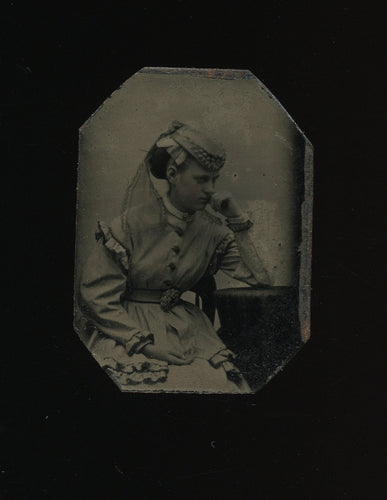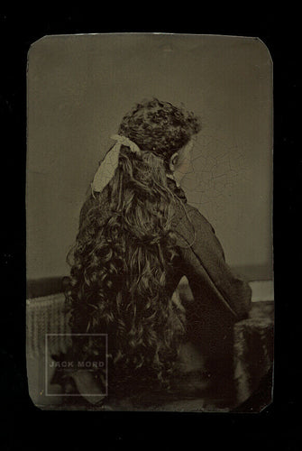Unusual tintype photo long hair girl back turned to camera possible mourning