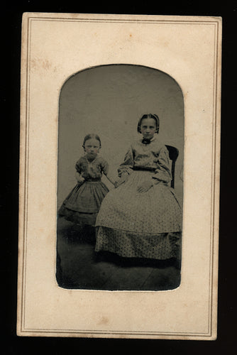 1860s Tintype Cute Little Girls, Sisters Holding Hands
